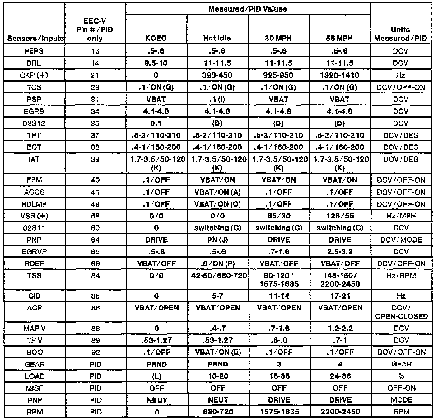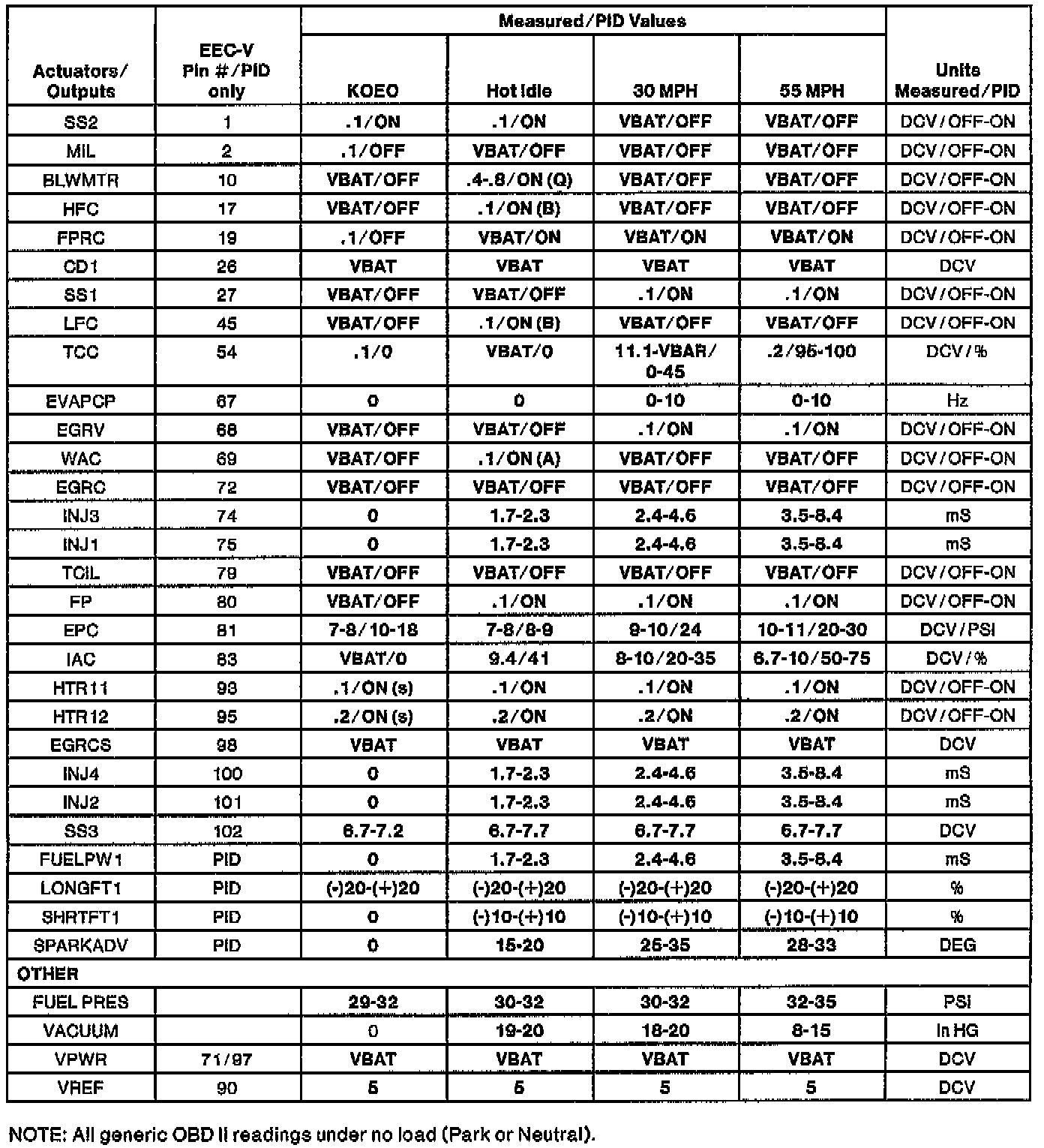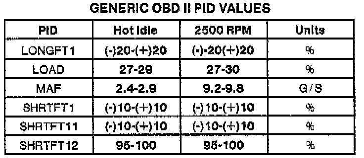 NOTE: All generic OBDII readings under no load (PARK or NEUTRAL).