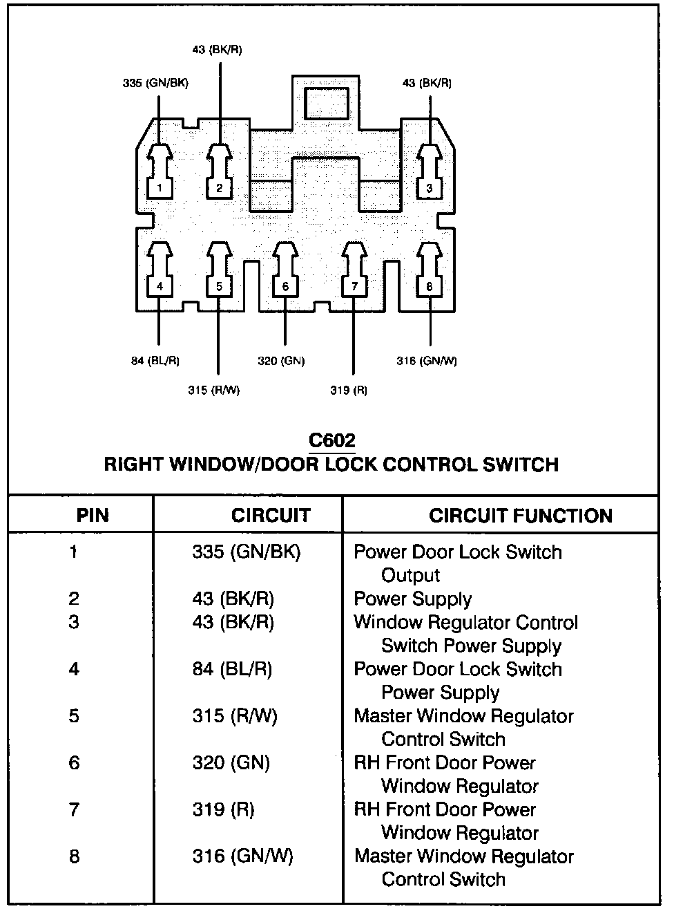 Right Window/Door Lock Control Switch: