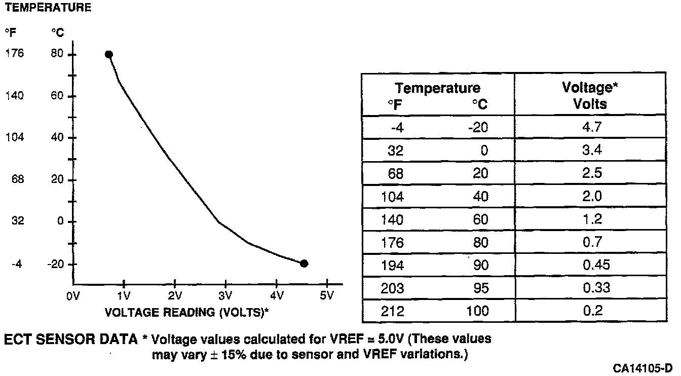 Engine Coolant Temperature (ECT) Sensor Graph: