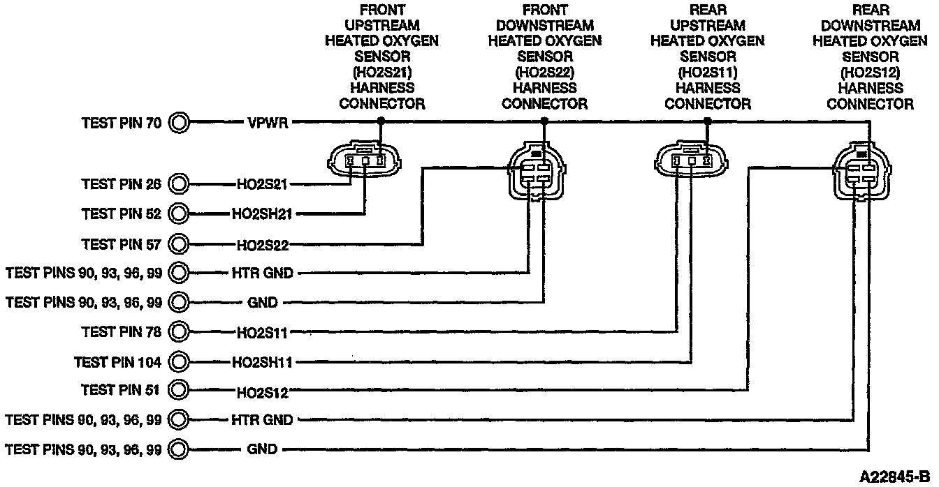 Fuel Injector And Heated Oxygen Sensor Harness Connectors: