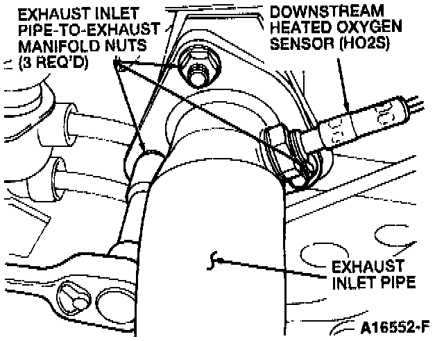 8. Remove the three front exhaust manifold-to-exhaust inlet pipe nuts.