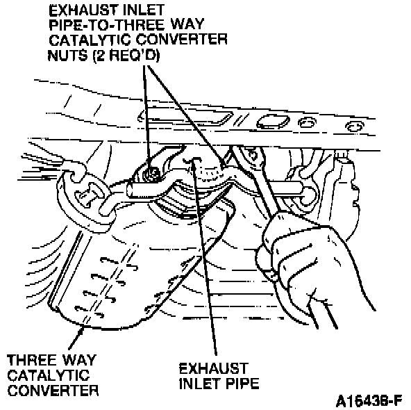 9. Remove the two exhaust inlet pipe to three way catalytic converter nuts.