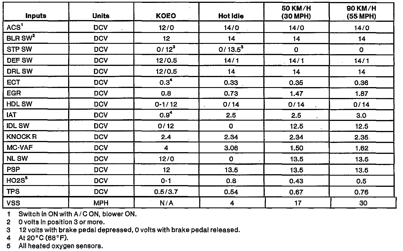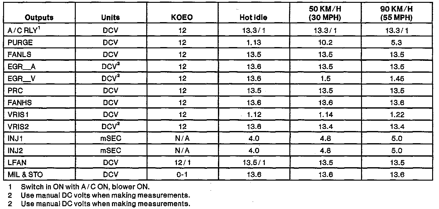 Reference values shown may vary approximately +/- 2O percent depending on operating conditions and other factors.