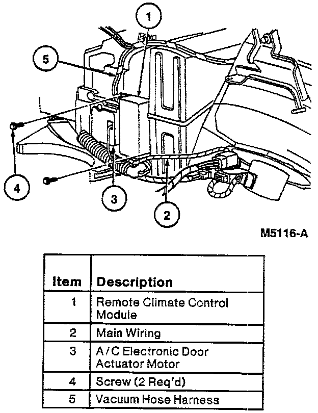 3. Remove the two screws retaining the remote climate control module to the A/C evaporator housing.