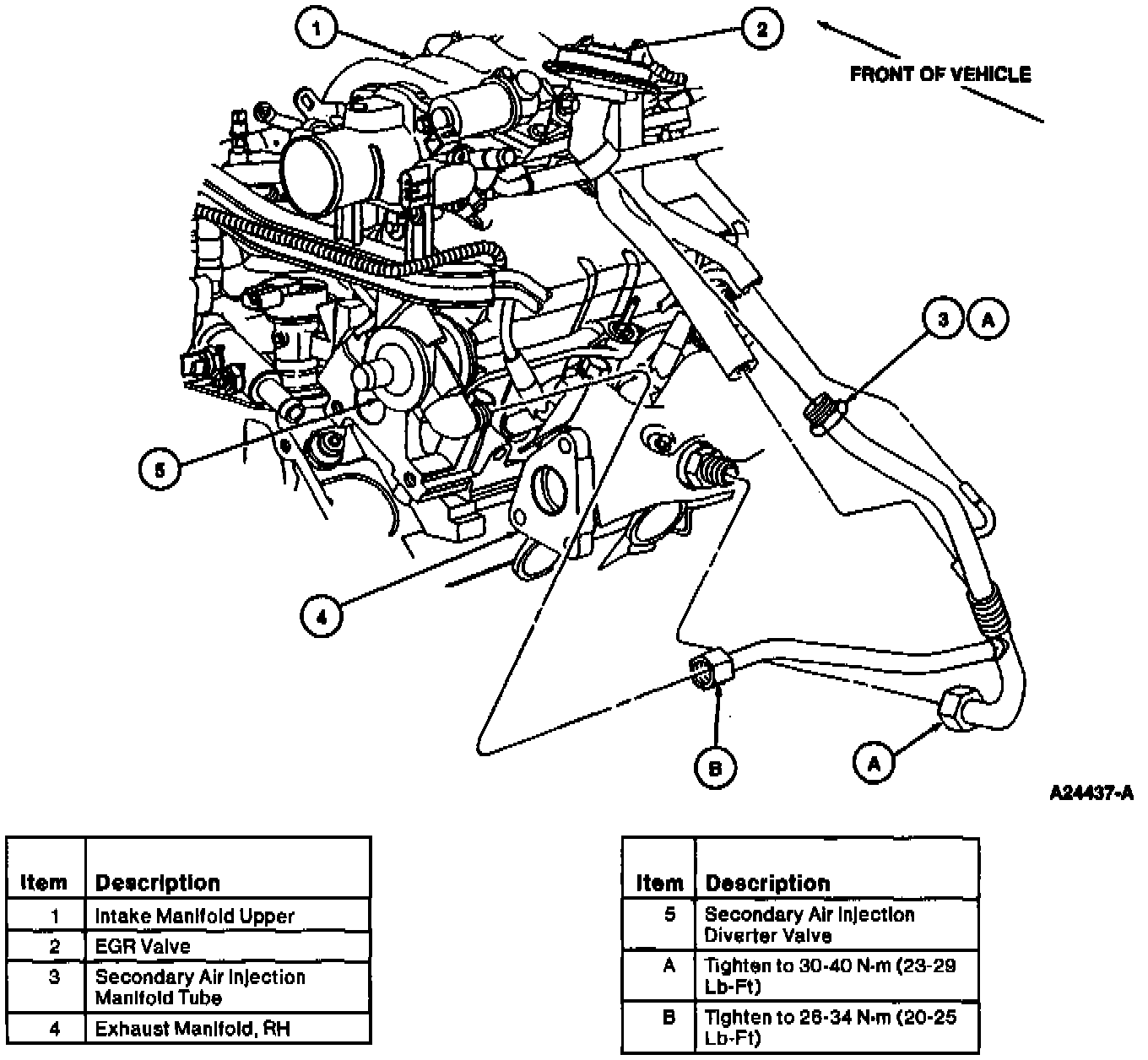 - Tighten EGR valve tube to manifold connector to exhaust manifold to 35-65 Nm (26-48 lb ft).