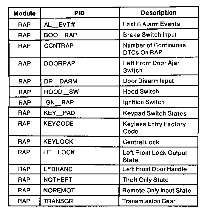 Remote Anti-Theft Module Parameter Identification (PID) Index