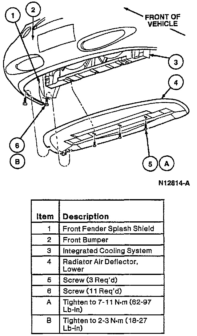 5. Install the lower radiator air deflector. Tighten the three splash shield to radiator screws to 7-11 Nm (62-97 in lb) and the remaining 11 screws to 2-3 Nm (18-27 in lb).