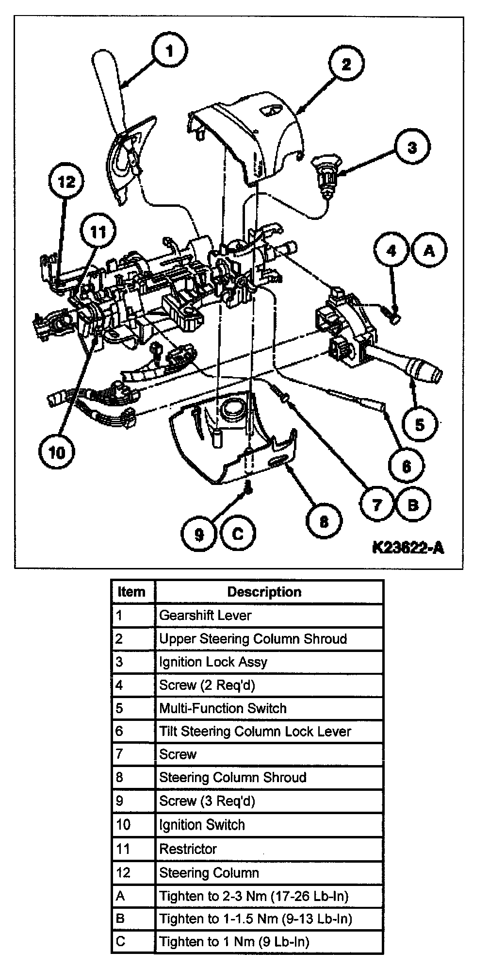 4. Remove shroud screws and remove upper steering column shroud and lower steering column shroud.