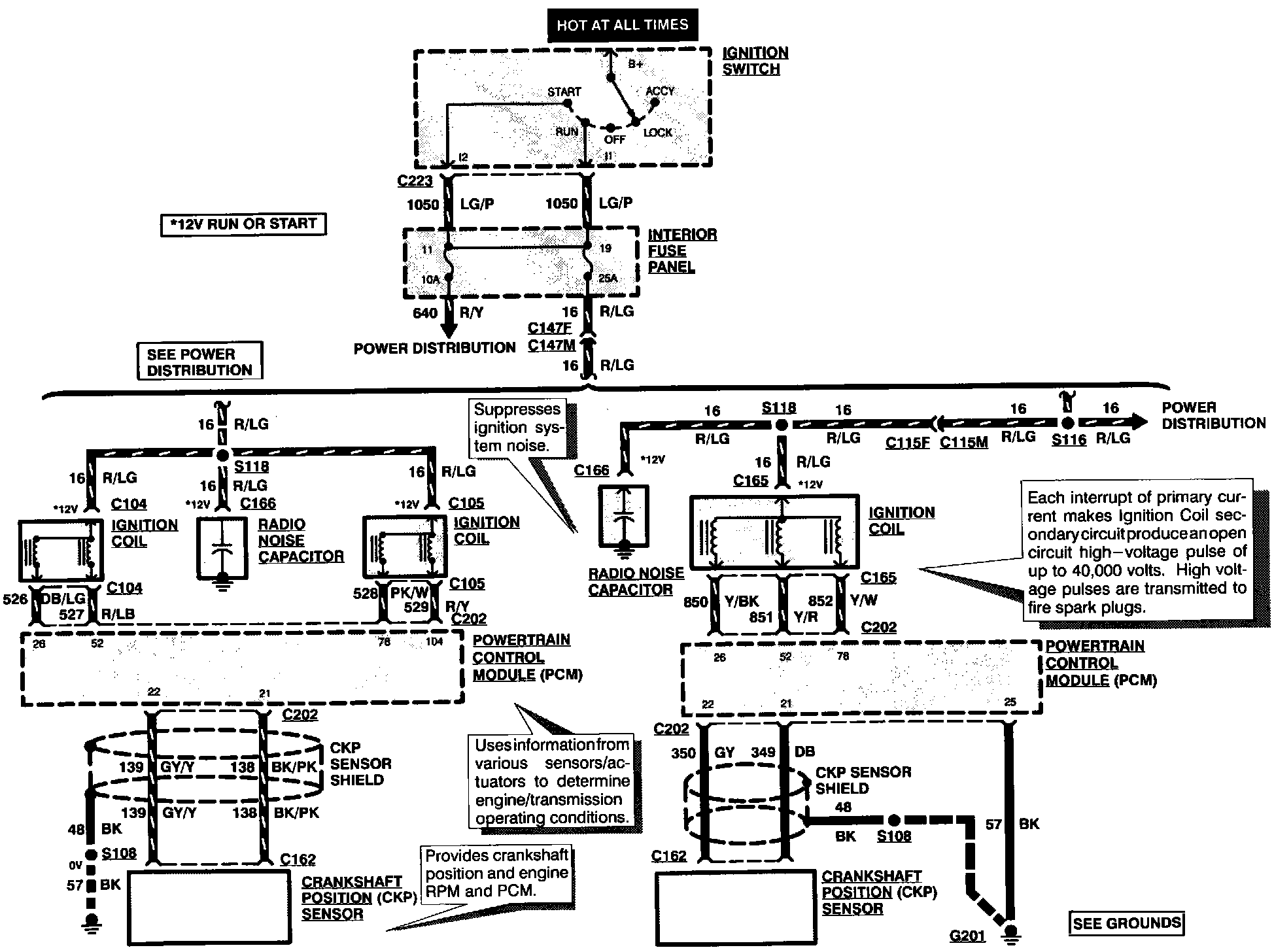 Using related sensor inputs, the Powertrain Control Module determines the ignition timing required by the engine and determines which ignition coil to use.