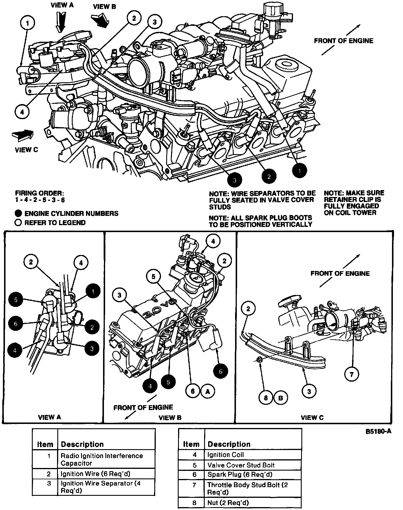 CAUTION: Proper installation of ignition wires is critical to vehicle operation. If any ignition wire is not properly installed on spark plug or ignition coil, both spark plugs connected to that ignition coil may not operate under load.
