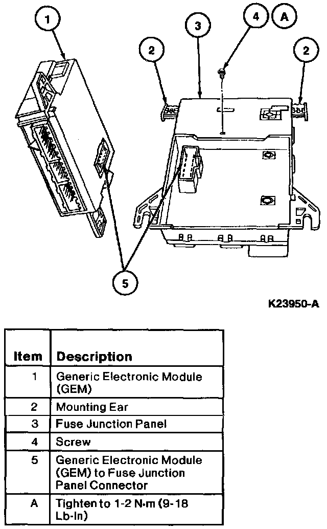 REMOVALThe Generic Electronic Module (GEM) is connected to the rear of the fuse junction panel.