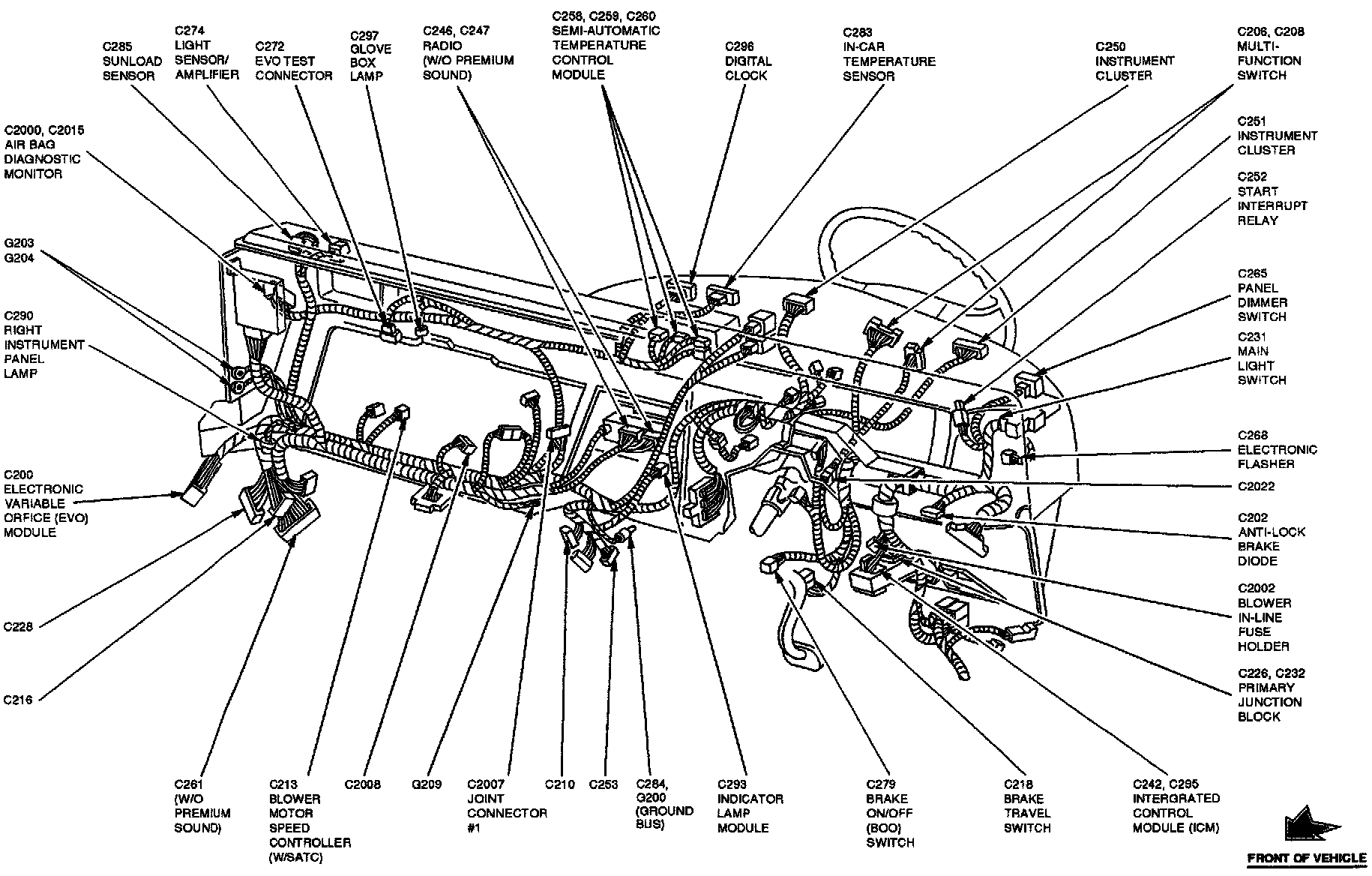 The Semi-Automatic Temperature Control Module is located at the center of the instrument panel.
