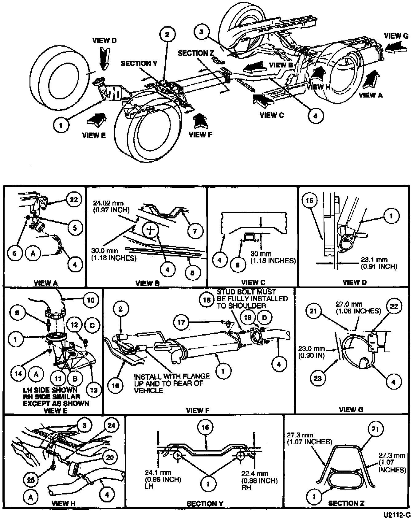 4. Align dual converter Y pipe to conform to clearance specification.