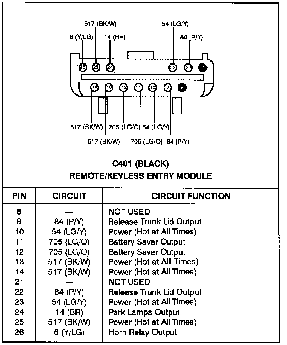 Remote/Keyless Entry Module (C401):