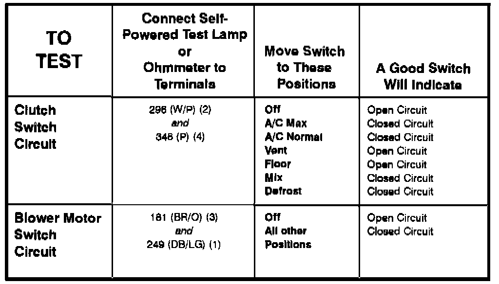A/C Heater Control Assembly - Component Testing Procedure: