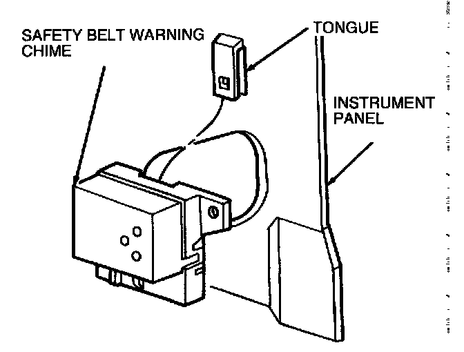 NOTE: The safety belt warning chime module is mounted to a tongue on the instrument panel lower reinforcement, near the LH side of the radio.