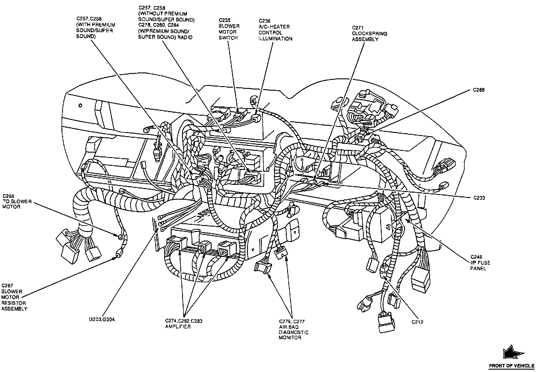 The Air Bag Diagnostic Monitor is located behind lower center of the instrument panel.