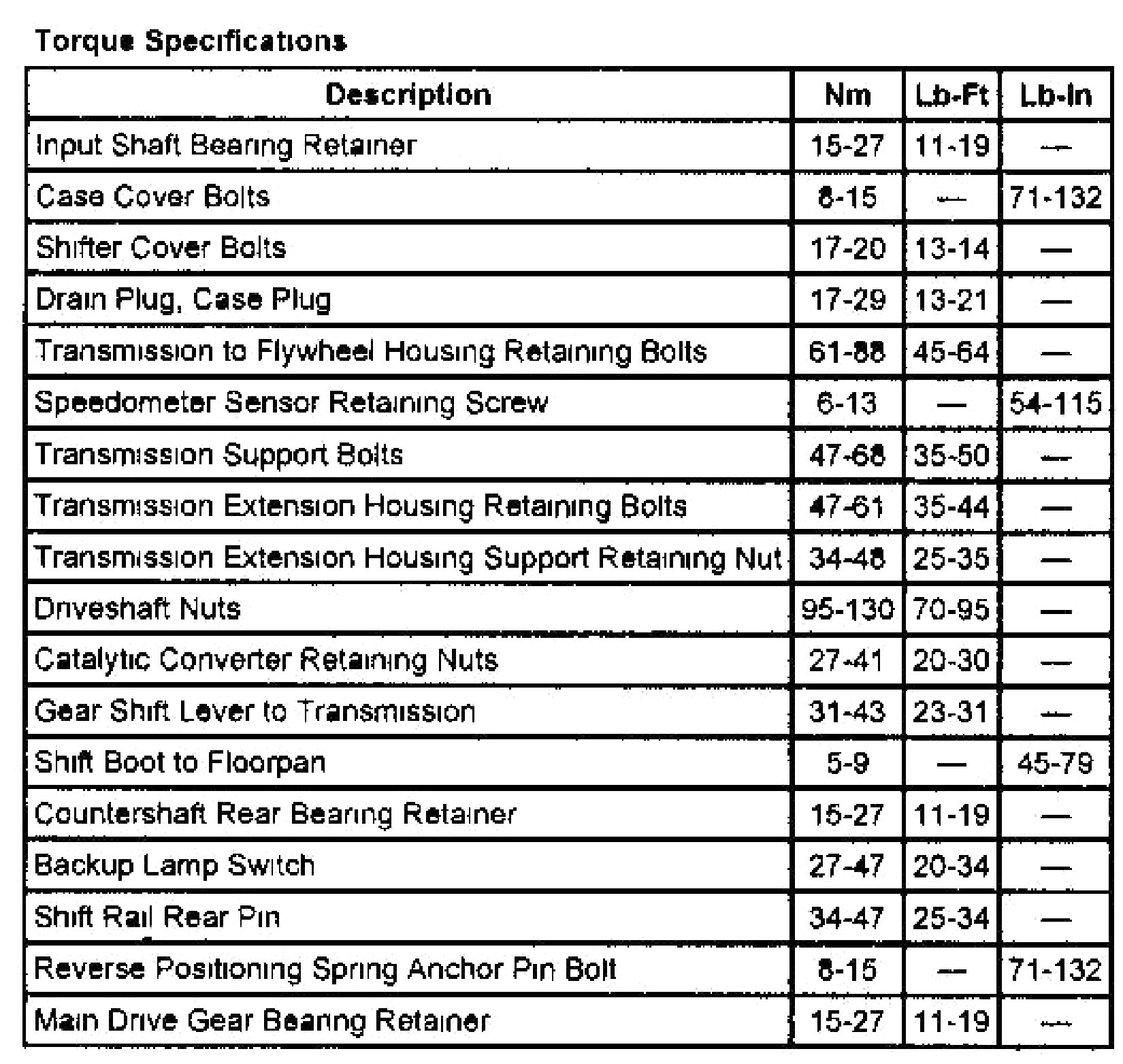M/T Torque Data