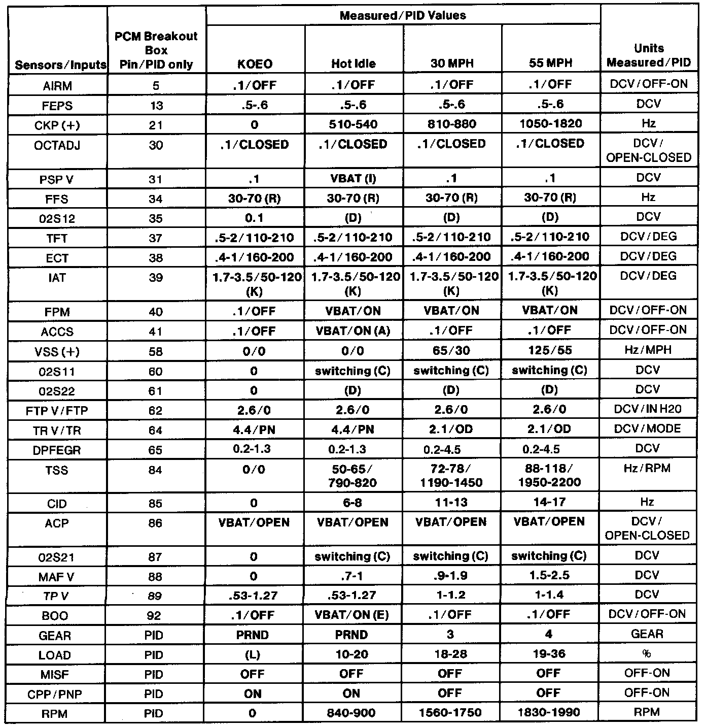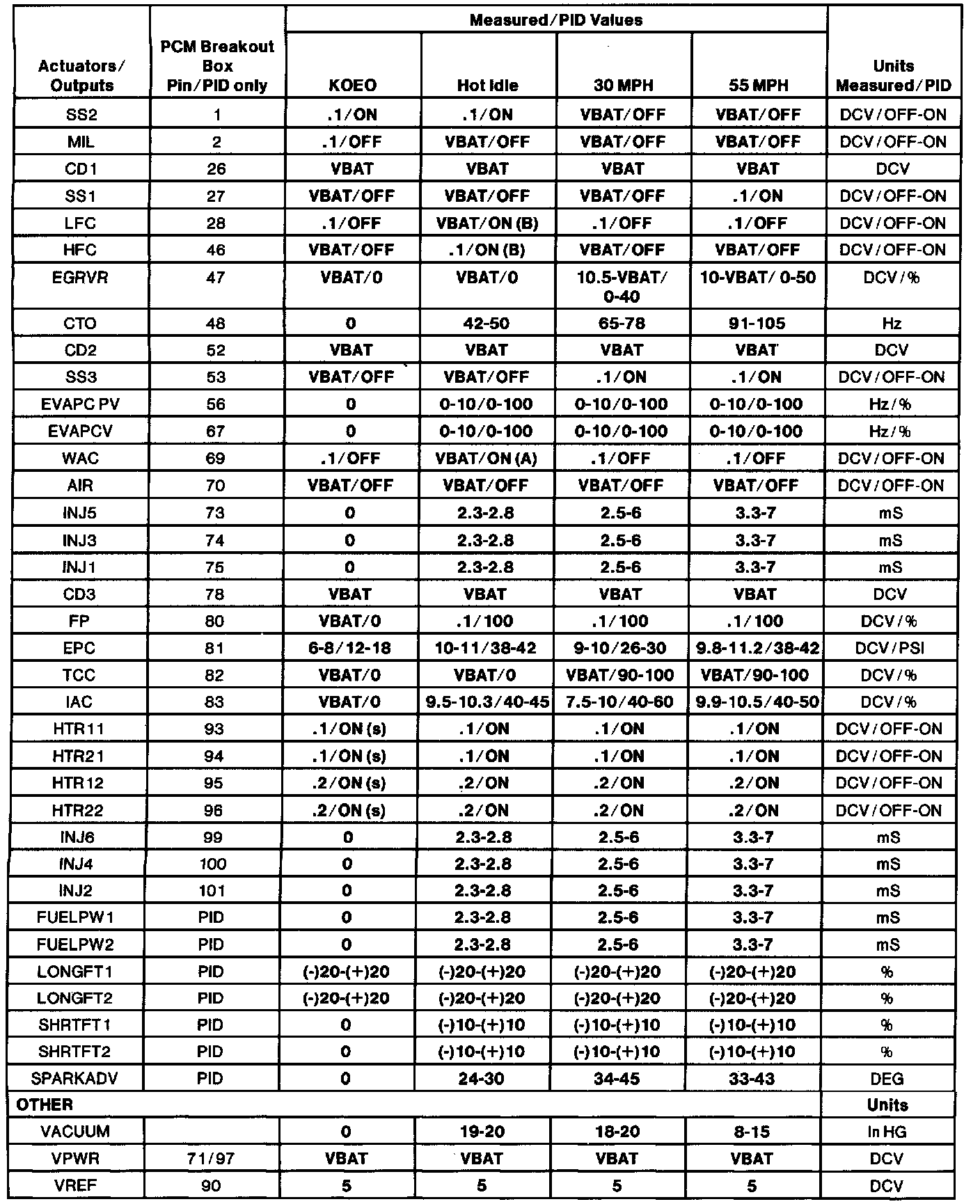 (H.) Values shown are commanded by the PCM and may not be actual.
