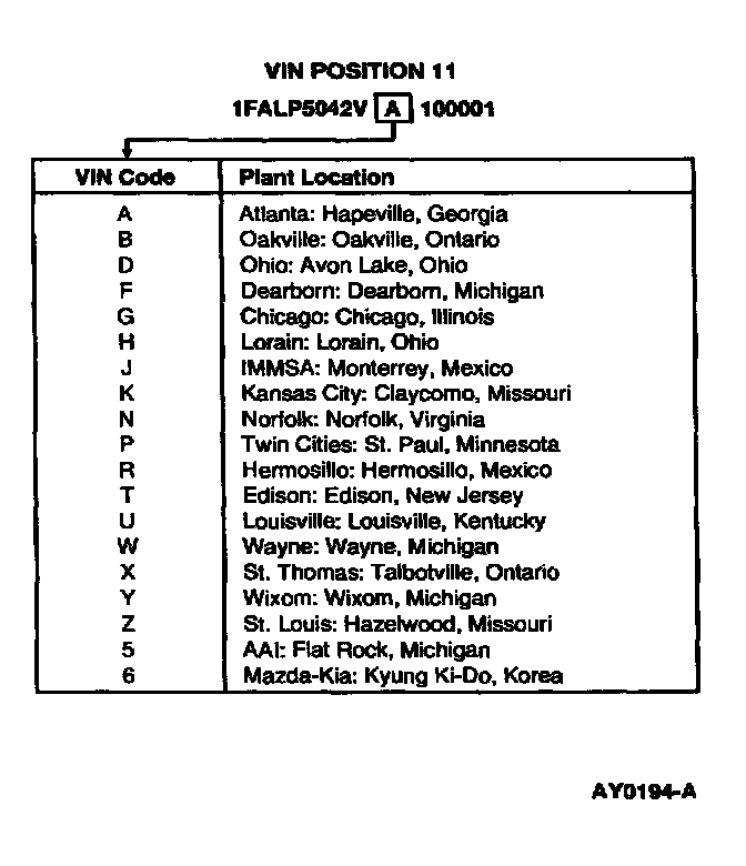 The VIN is a 17-character alpha-numeric VIN. This number is used for warranty identification of the vehicle and indicates the following: