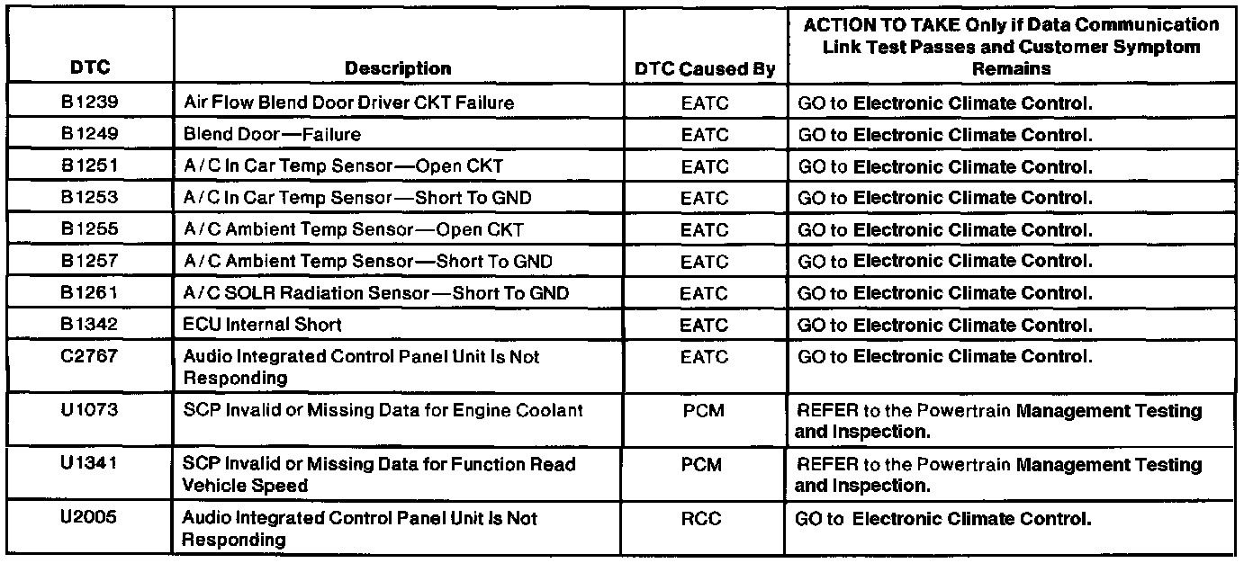 Remote Climate Control Module Diagnostic Trouble Code Index