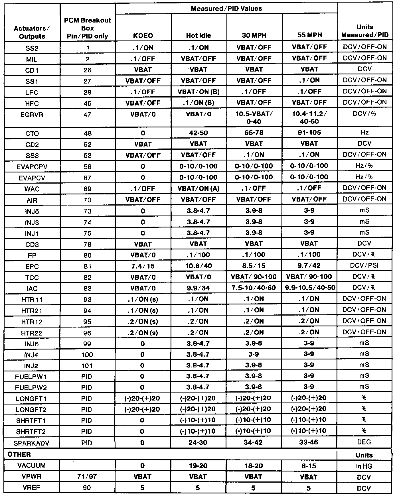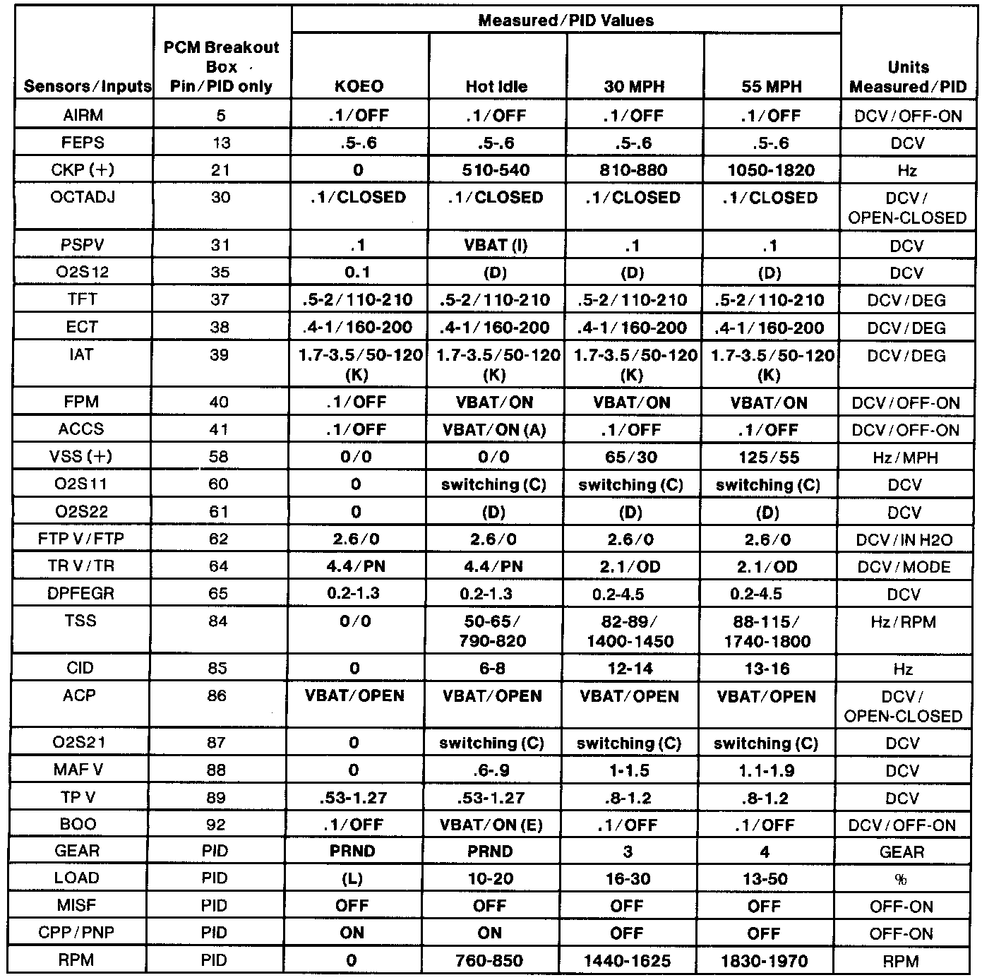 (H.) Values shown are commanded by the PCM and may not be actual.