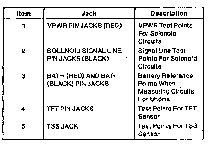 2. Solenoid (TCC, EPC) Signal Line Pin Jacks (Black): Signal line test points for solenoid circuits.