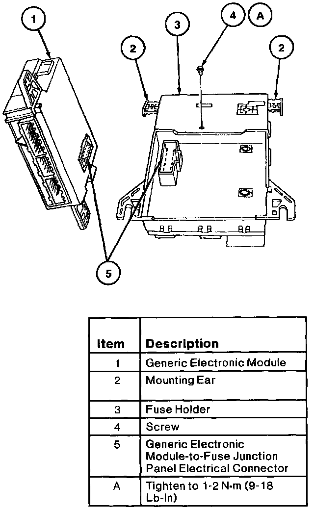 4. Turn fuse junction panel over. Remove screw retaining GEM to fuse junction panel.