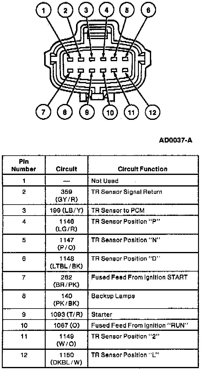 Transmission Range (TR) Sensor Vehicle Harness Connector: