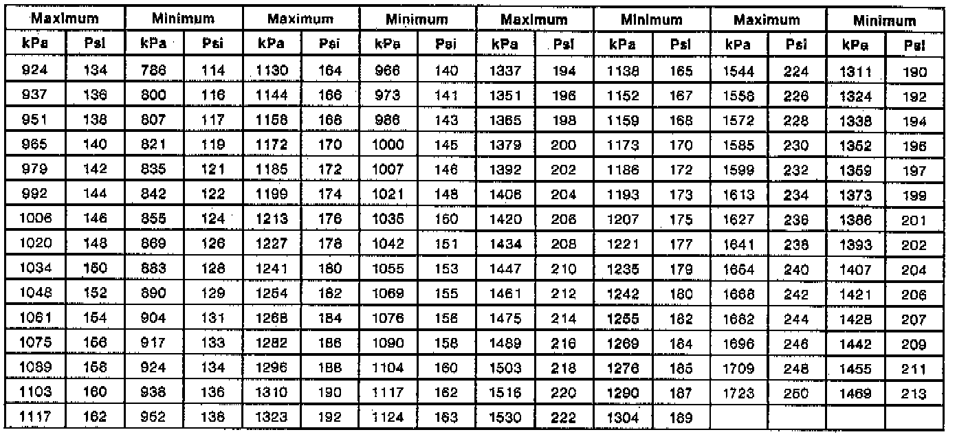 Pressure, Vacuum and Temperature Specifications