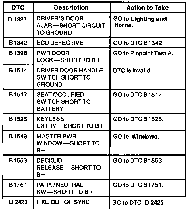 Driver Door Module (DDM) Diagnostic Trouble Code (DTC) Index