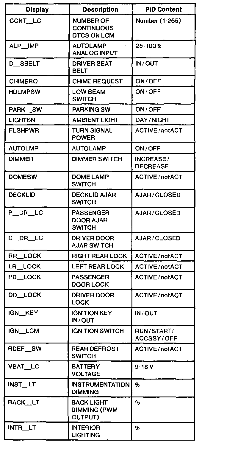 Lighting Control Module (LCM) PID Index