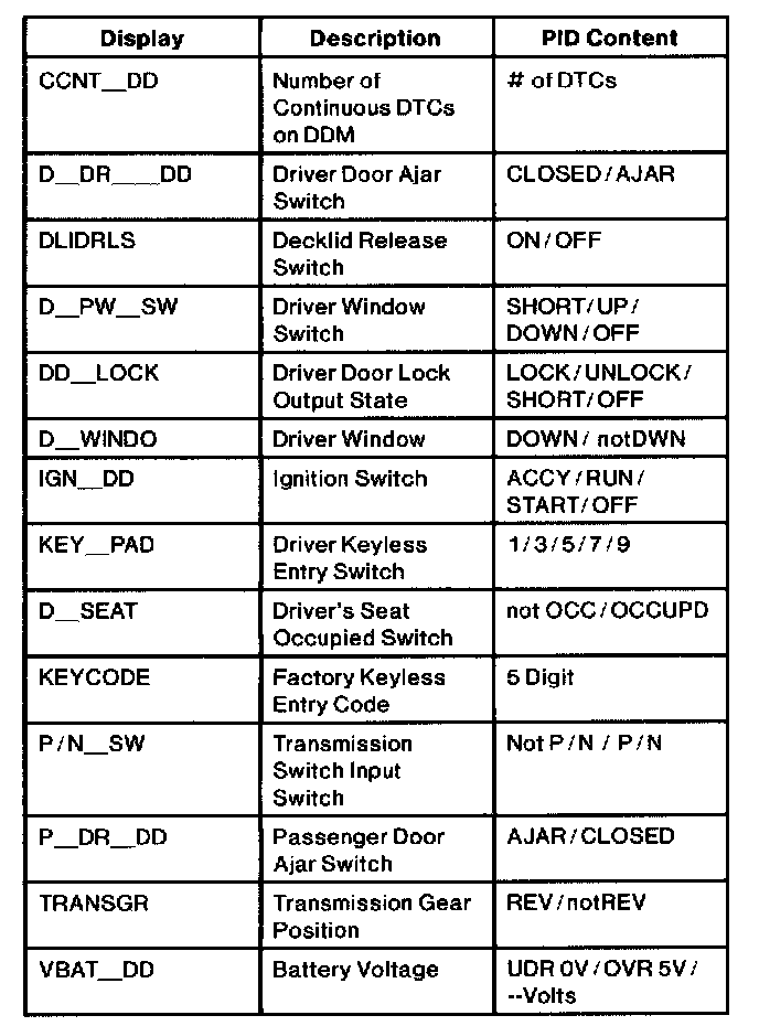 Driver Door Module Parameter Identification Index