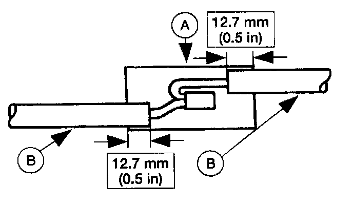 5. Position the (A) heat shrink tube over the (B) wire repair.