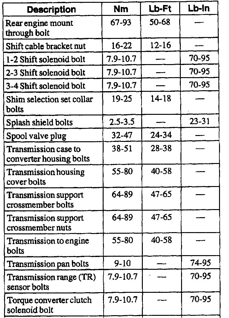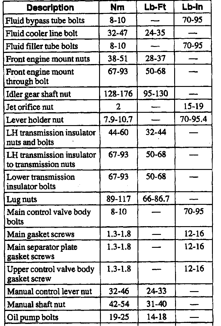 F4E III 4-spd A/T, Transaxle Torque (Escort/Tracer):