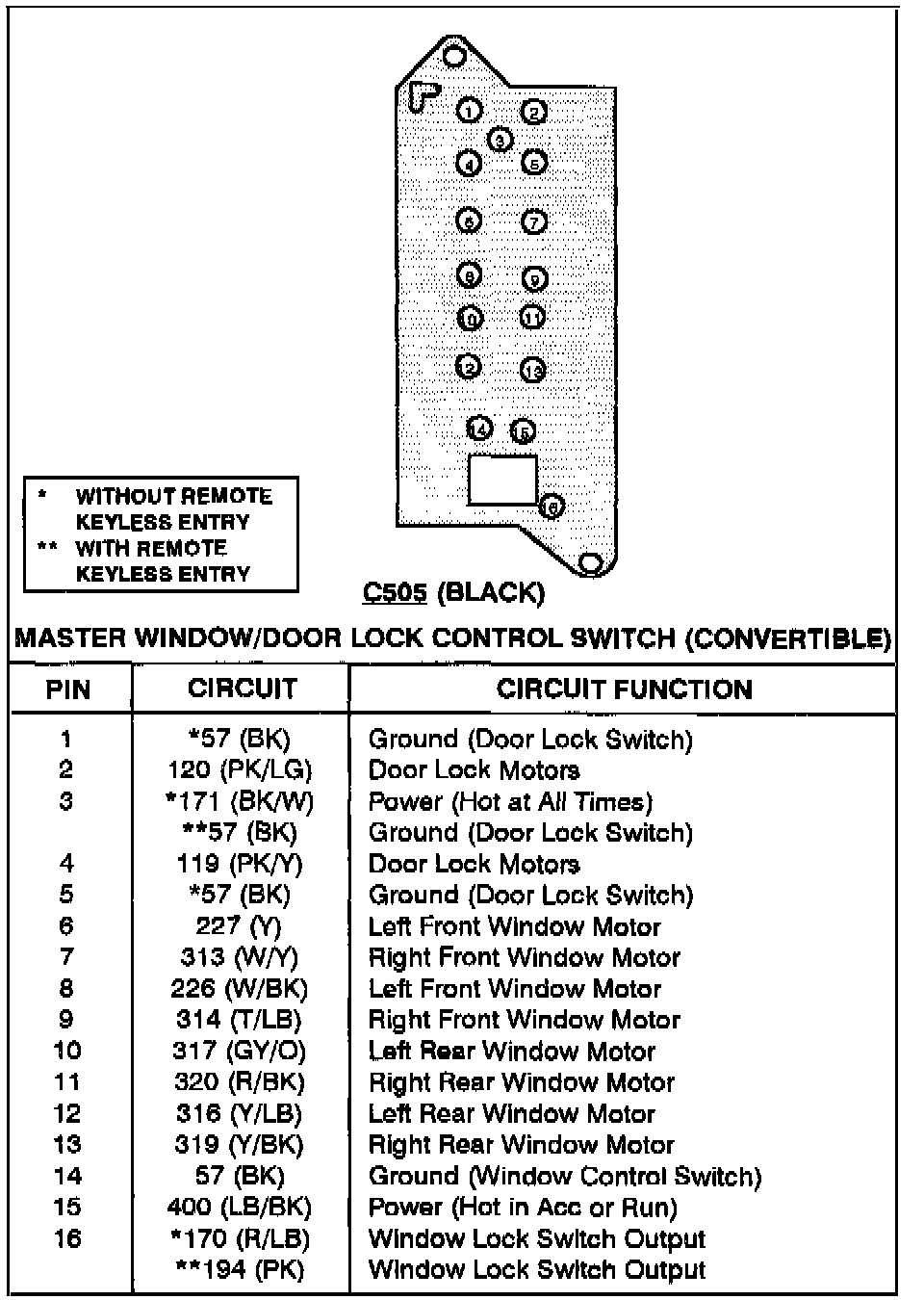 Master Window/Door Lock Control Switch