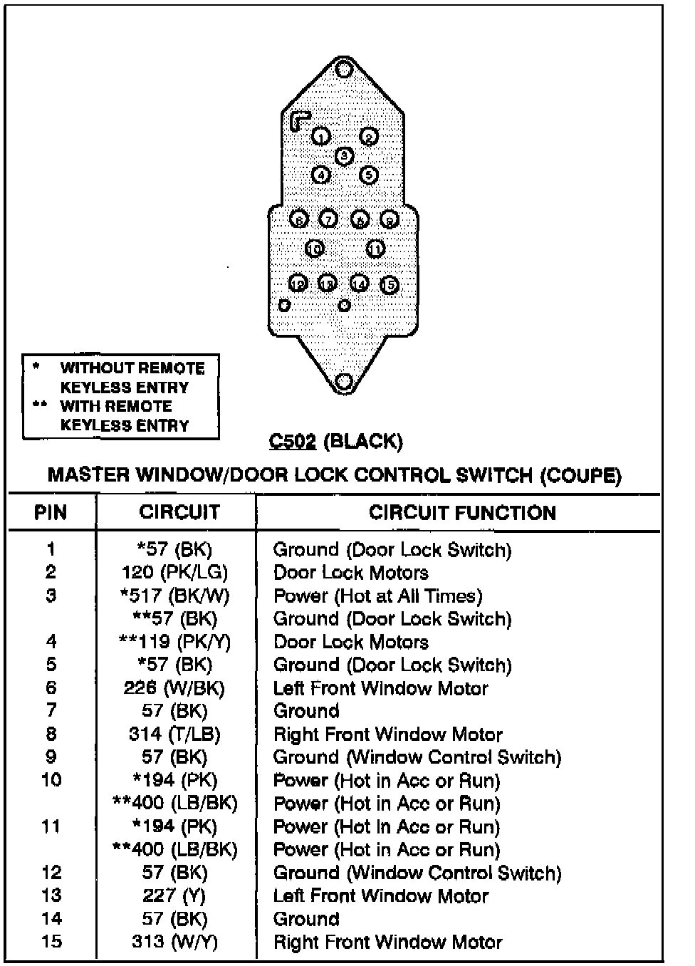 Master Window/Door Lock Control Switch