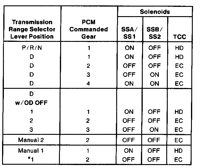 ^ one pulse-width modulated Torque Converter Clutch Solenoid(TCC solenoid) for Torque Converter Clutch (TCC) control or "controlled slip" of the torque converter clutch