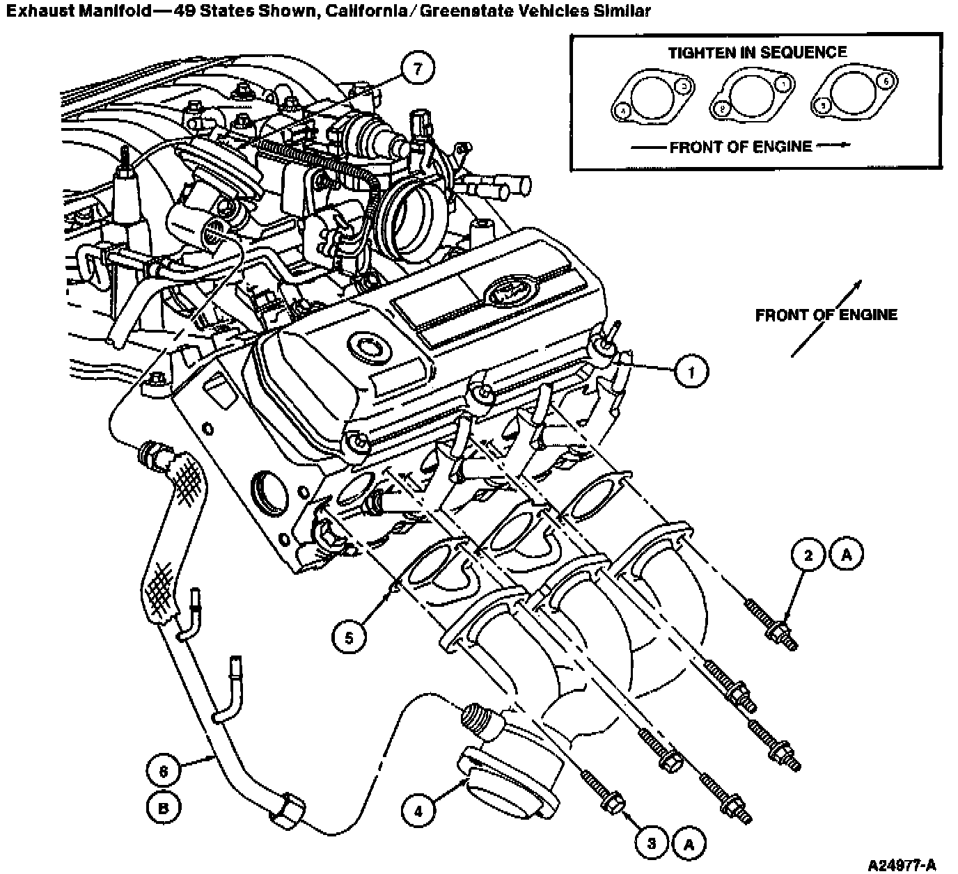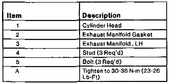 Tighten exhaust manifold retaining bolts and stud bolts to 30-36 Nm (23-26 ft. lbs.).