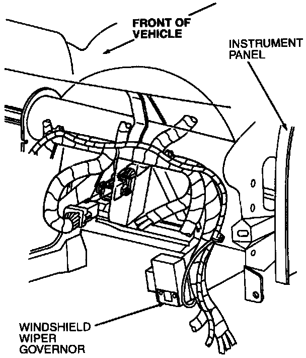 NOTE: The windshield wiper governor is located behind the instrument panel, near the top of LH cowl panels.