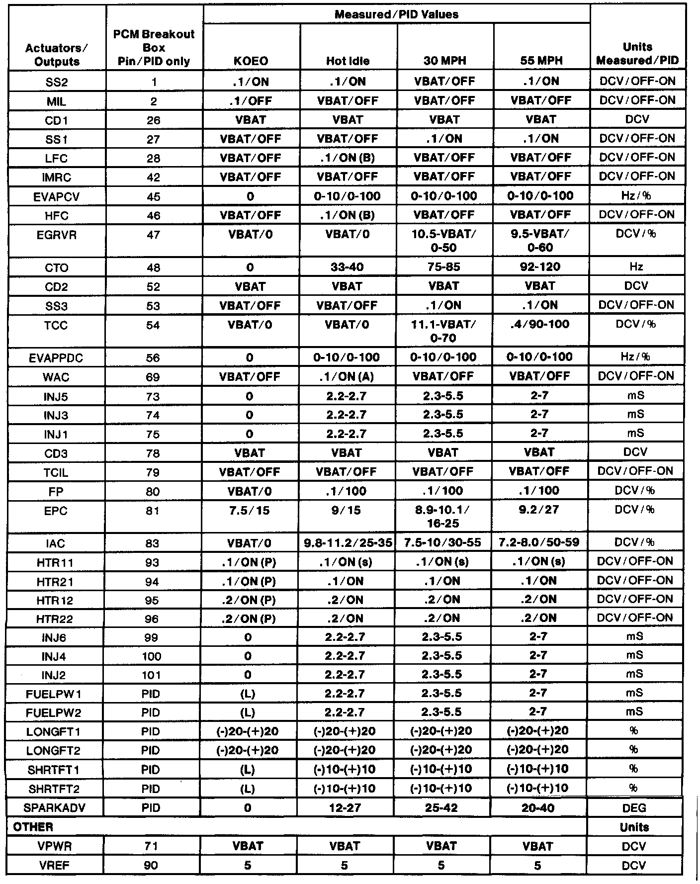 - The Typical Diagnostic Reference Value Charts do not display fault PIDs. These are PIDs which indicate a hard fault with the circuit. They display a value of "YES" or "NO" and are PIDs ending with an "F". These do not include EVAPPF, FF, MAF or VREF.