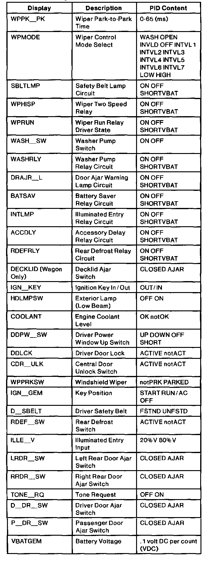Diagnostic Trouble Code Descriptions
