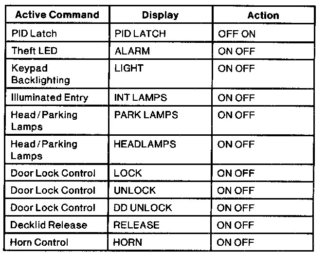 Remote Anti-Theft Personality Module Active Command Index