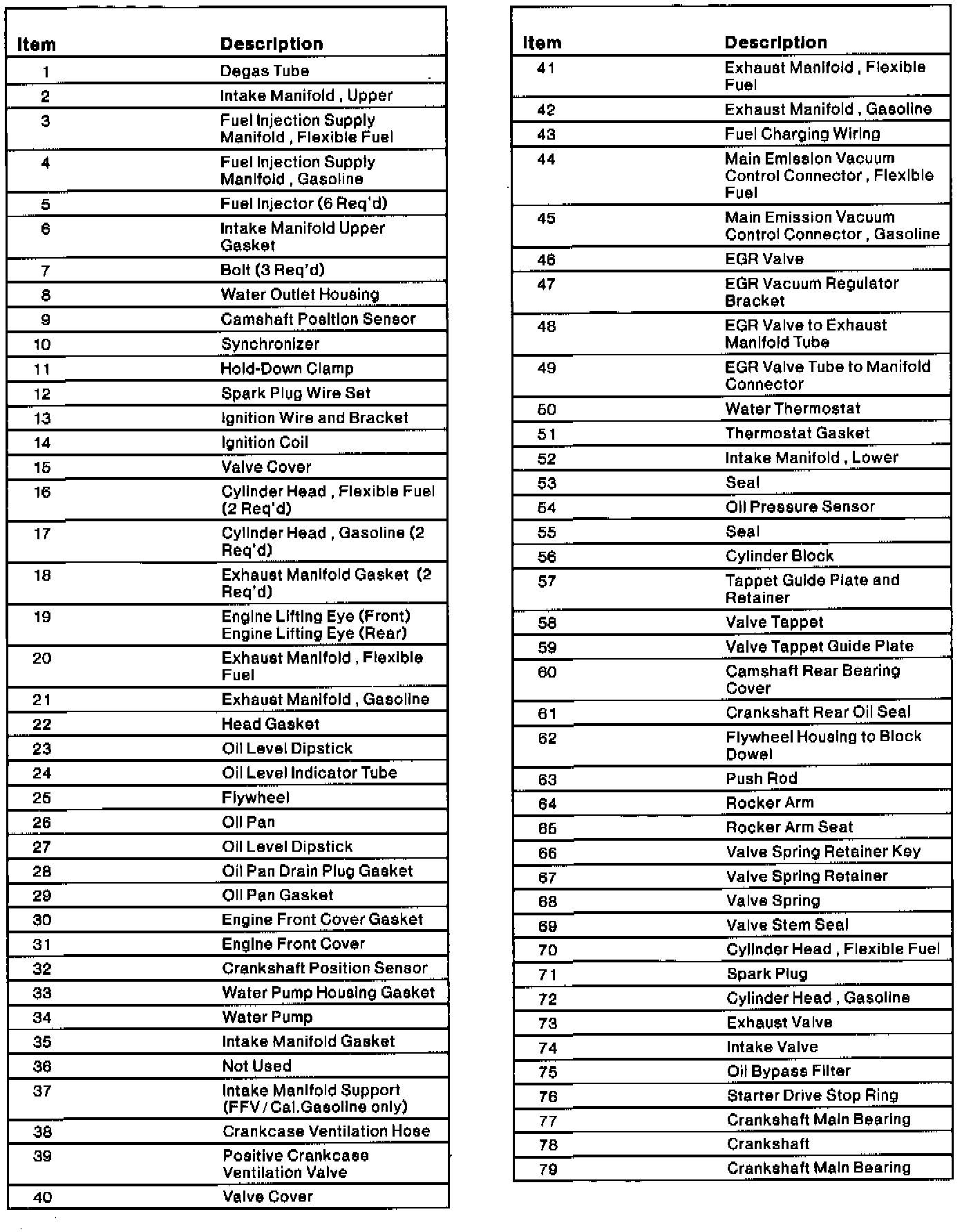 Taurus V6-3.0L VIN 2 Flex Fuel