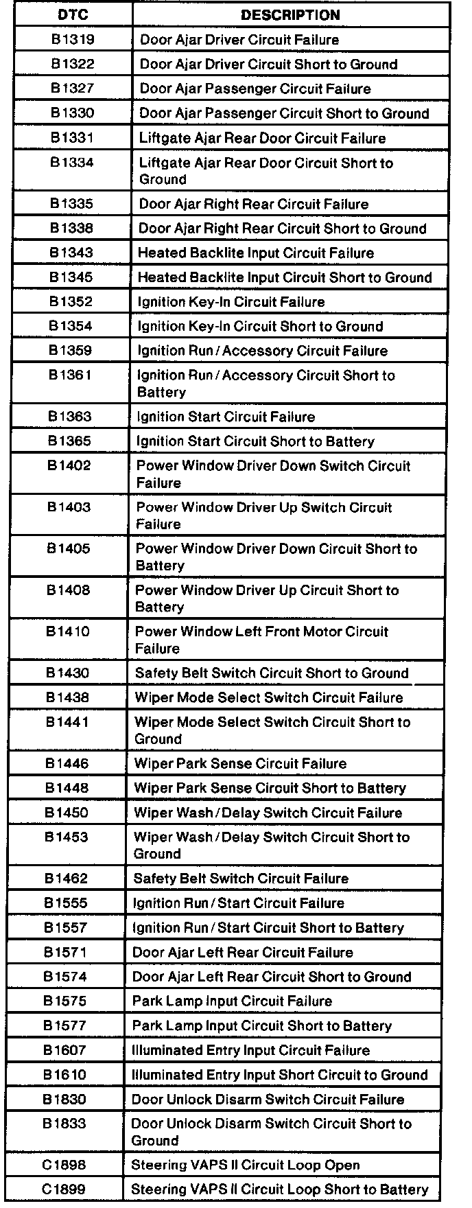 Diagnostic Trouble Code Descriptions