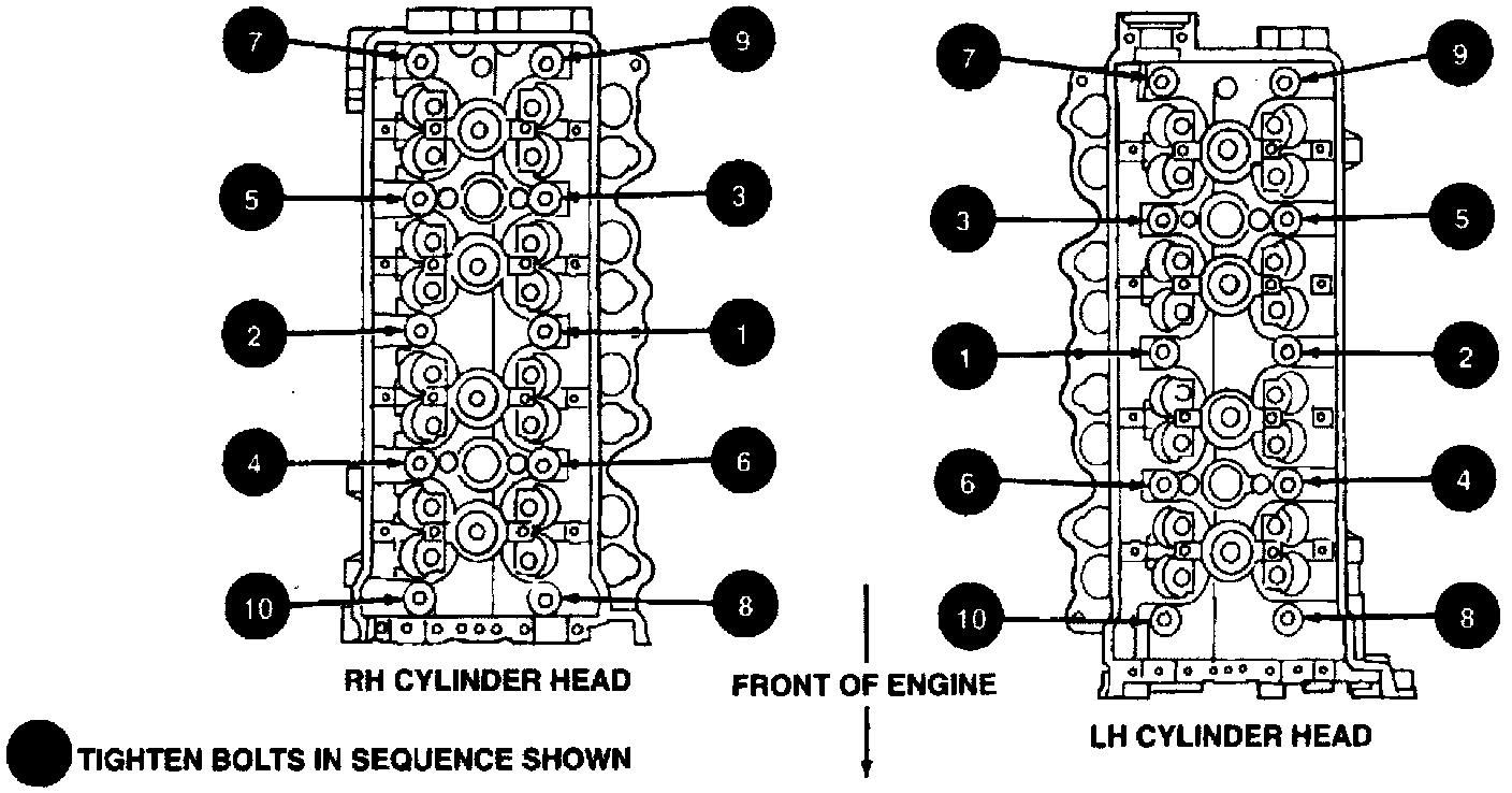 Install new torque-to-yield cylinder head retaining bolts and tighten in sequence, as follows: