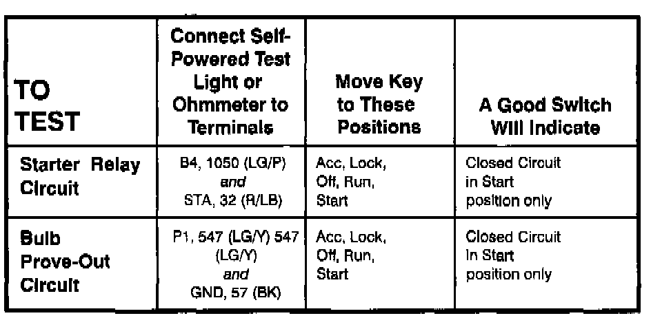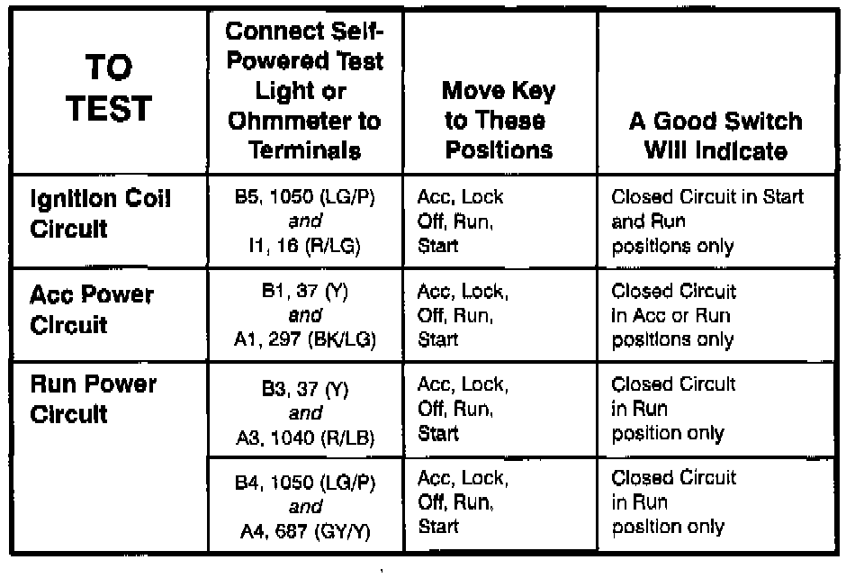 Ignition Switch - Component Testing Procedure (Part 2 Of 2):