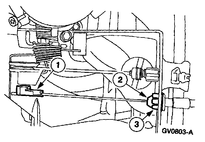 - Move the spring tab away from the speed control cable end to release the cable from the actuator.