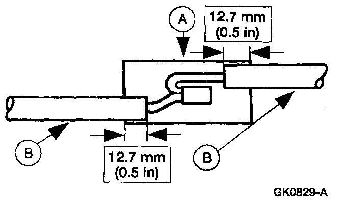 5. Position the (A) heat shrink tube over the (B) wire repair.