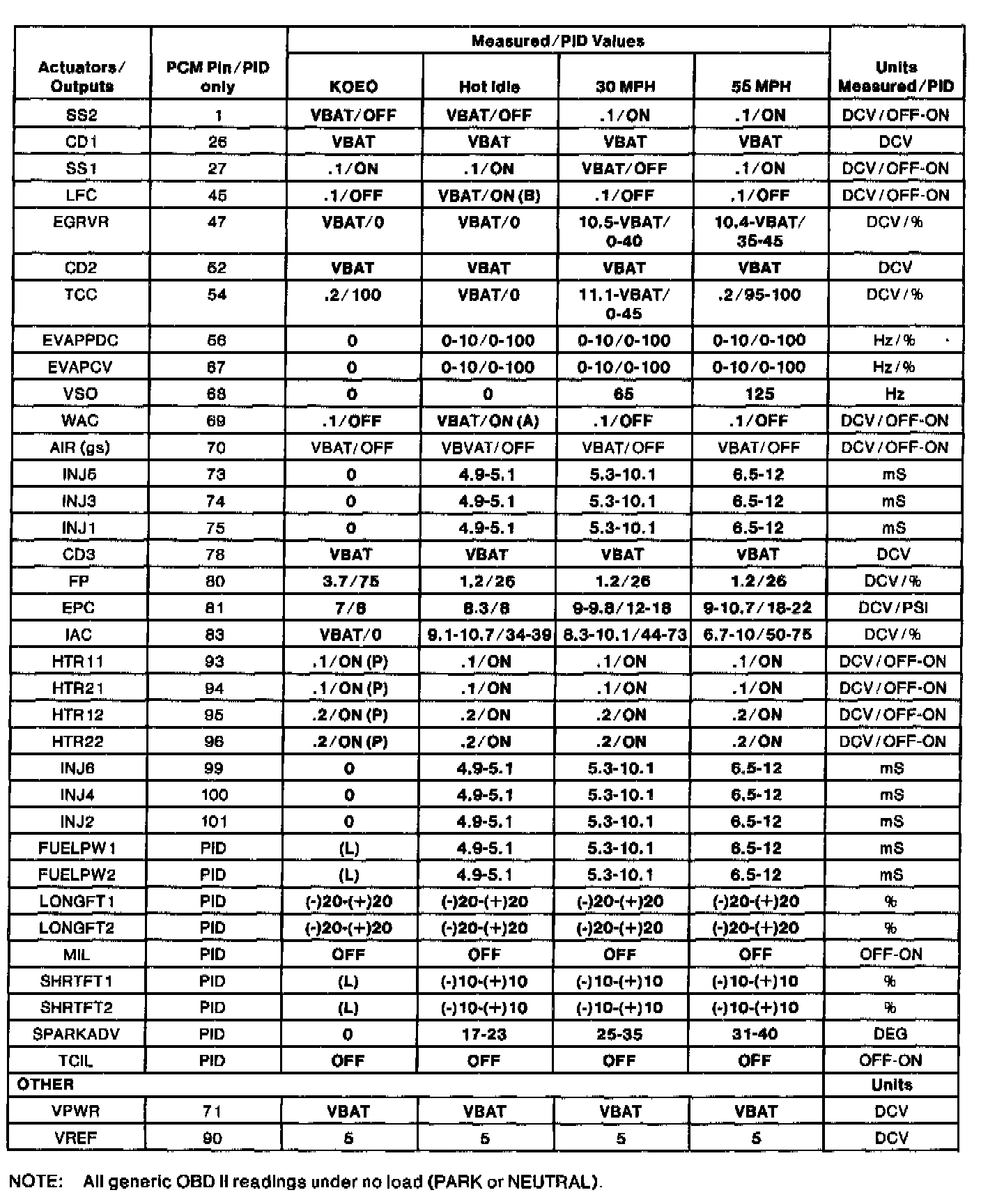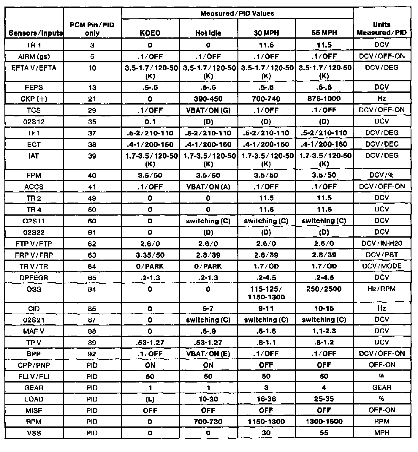 - The Typical Diagnostic Reference Value Charts do not display fault PIDs. These are PIDs which indicate a hard fault with the circuit. They display a value of "YES" or "NO" and are PIDs ending with an "F".